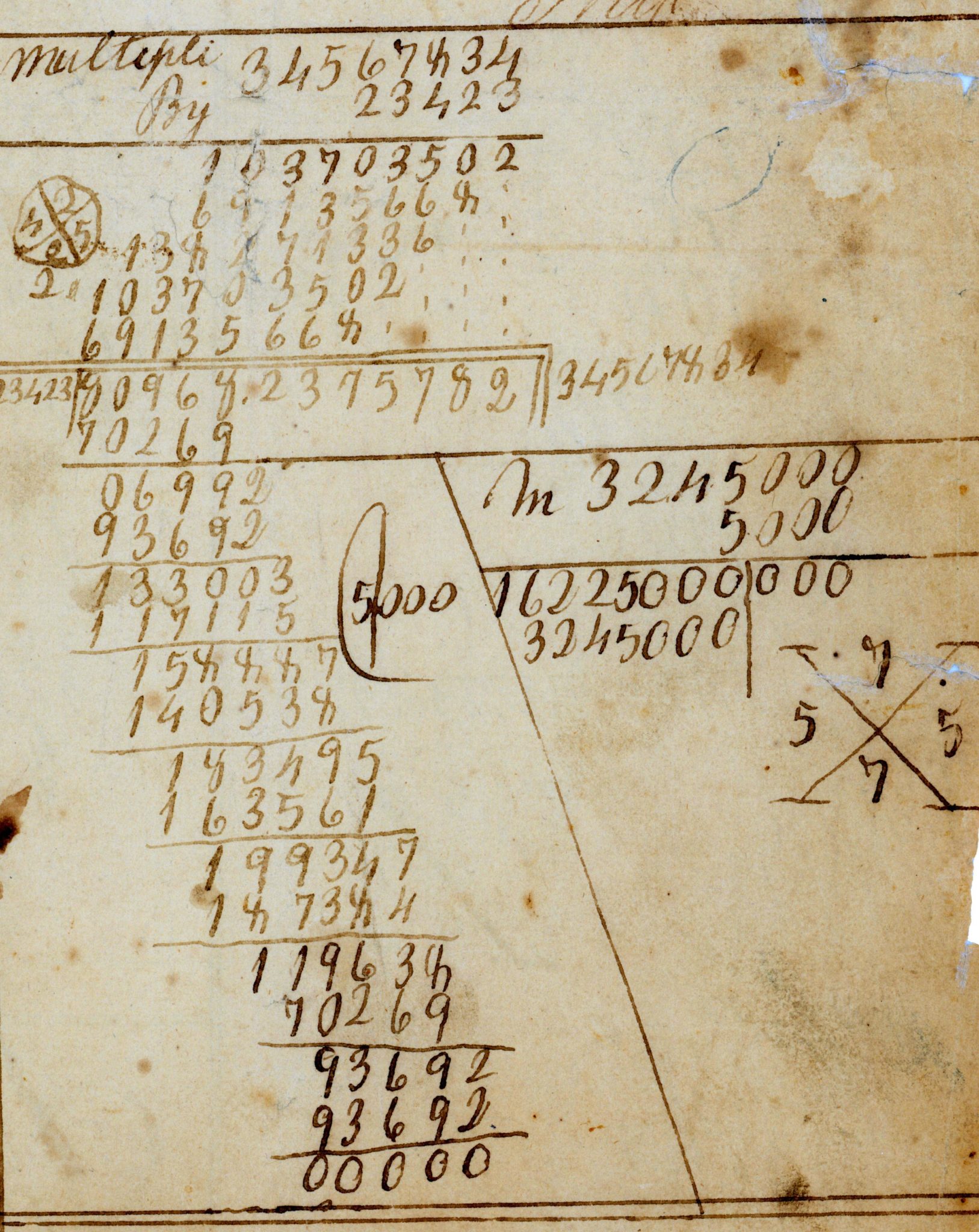 The casting-out-nines check was not infallible. Sometimes it could suggest an answer was correct when, in fact, it was not. A more reliable check was to divide the answer to the multiplication task by one of the original numbers. Abraham did that (see Figure 3). The result of such a division should be the other original number.