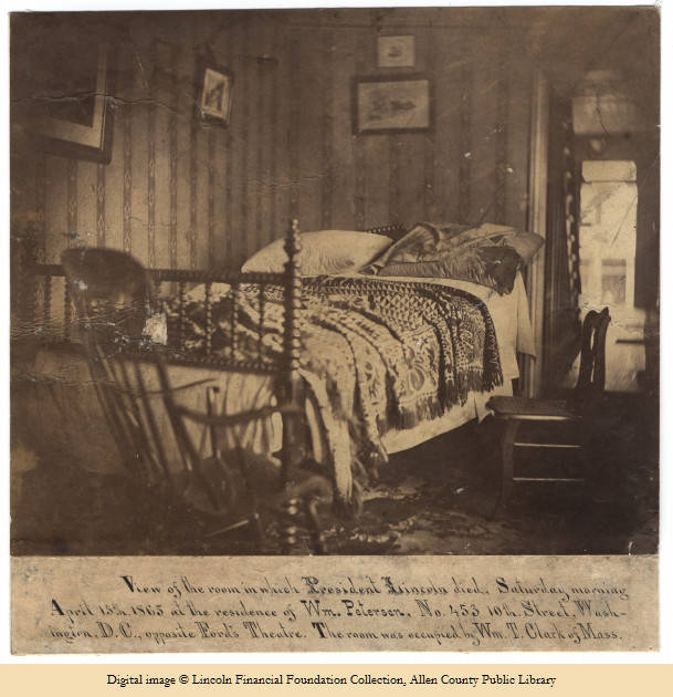 EA: Moments after Dr. Leale began treating Lincoln, two other doctors, Dr. Albert King and Charles Sabin Taft made their way into the Presidential box. After Lincoln’s condition appeared to stabilize, the three physicians discussed moving him to somewhere more commodious. Their first thought was the White House. But that was seven blocks away and Lincoln might not survive the jostling trip through Washington’s deeply rutted streets. Instead, they decided the best place to move him would be to one of the houses across the street from the theatre. After it was determined that no one in the house directly across from the theatre was home, Lincoln’s body was carried a few houses down the street to the Petersen house where he died the next morning.