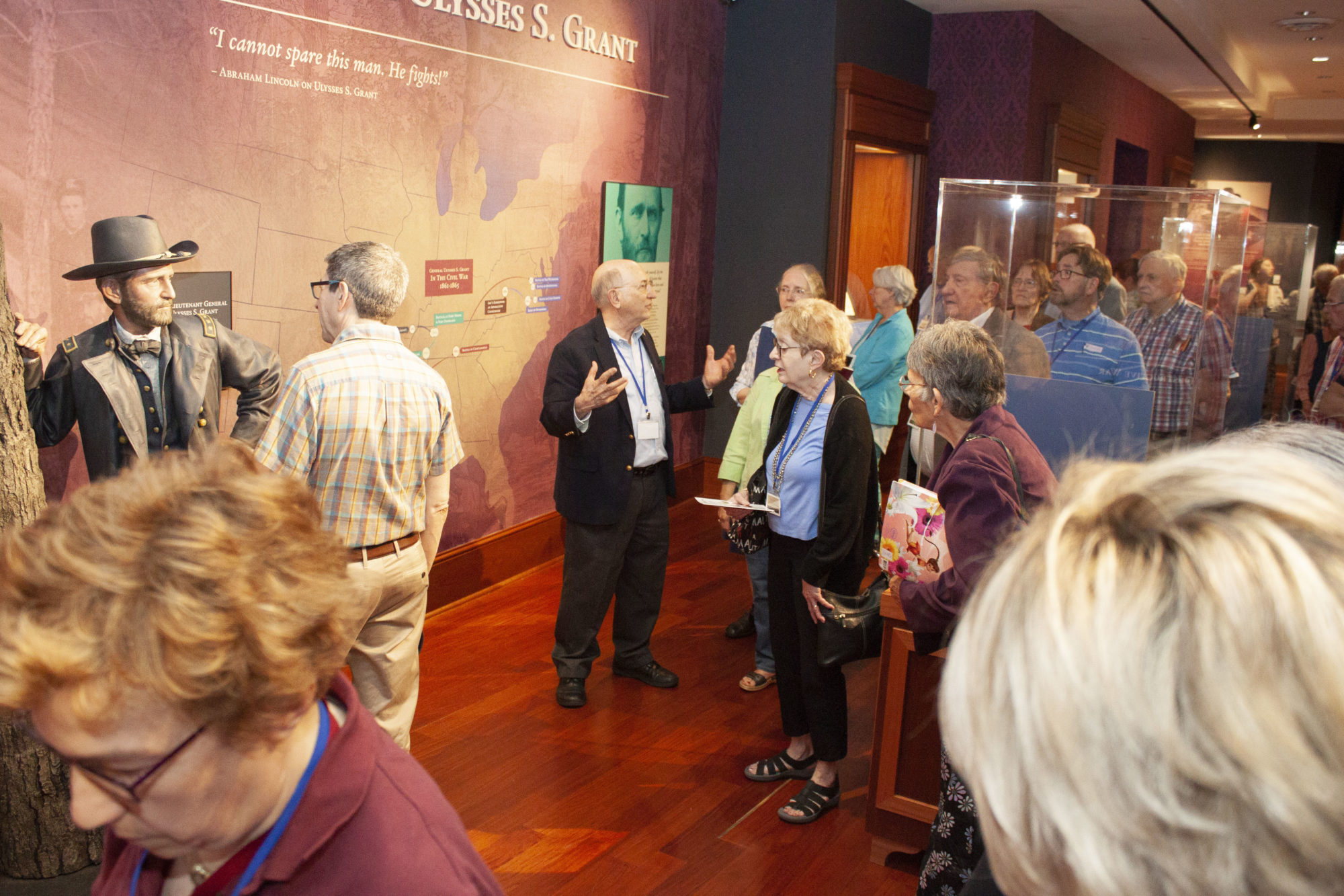 Four years before the grand opening, librarians and staff members worked together to plan the new facility. An architect was hired and so were professional museum planners, an interactive television company, makers of four life size Grant statues, and a company that put finishing touches on the project. The result is a state-of-the-art museum, with a cold storage area, a preparation room for additional collections, staff offices, a reading room for research visitors, a gallery on Grant and another one on Lincoln, an orientation room with a ten minute film, and a welcoming area where volunteer docents greet visitors.