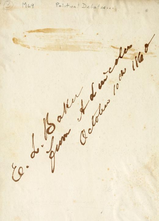 [8] Sheahan to Lincoln, January 21, 1860. Sheahan was intentionally imprecise here; he was not actually contemplating a rival edition of the debates, but working on a campaign biography of Douglas, not only a fellow Democrat but an investor in the paper.